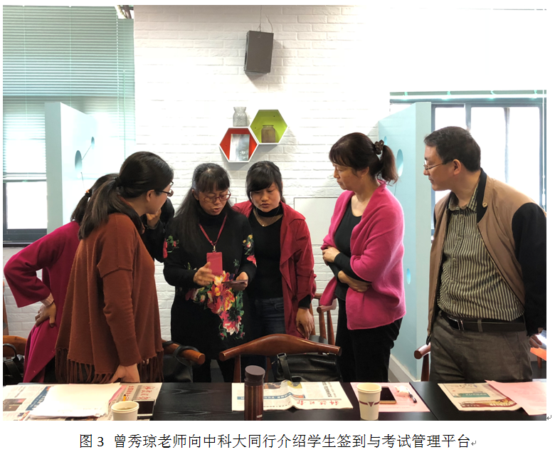 参观结束后,双方在实验中心319室举行了座谈会。首先,王国平老师向中科大同行详细介绍了安全制度建设、安全设施建设和安全管理等方面的情况,包括从学生到助教到任课老师三个层面安全意识的培养、安全演习、日常安全措施等。接着,朱平平教授向我中心老师们介绍了中科大的开课情况,以及青年教师培养和科普宣传等方面的经验。随后,曾秀琼老师向来访老师们演示了学生线上签到与考试管理微信平台,展示了化学实验中心利用新媒体辅助实验教学的最新成果。最后,王敏主任和朱平平主任分别发言,表示应该进一步加强两个高校的相互交流,向建设双一流高校的目标而共同努力!
