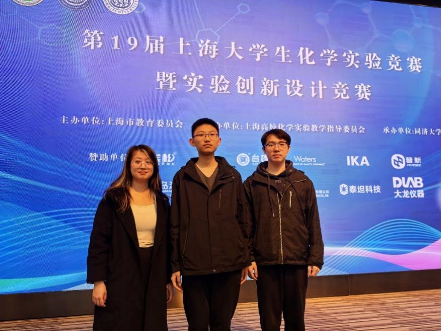 为促进上海高校化学实验教学改革,培养大学生的创新精神、实践能力和应用能力,提高高校本科化学实验教育水平与人才培养质量,由上海市教育委员会主办,上海高校化学实验教学指导委员会协办,同济大学承办的第十九届上海大学生化学实验竞赛于2025年11月14 - 16日在同济大学四平路校区成功举行。今年共有来自复旦大学、同济大学、上海交通大学、南京大学、浙江大学等19所高校共57名化学专业本科生参加了比赛,我系23级陈华洋、赵曦坤和24级鲜于藻三位同学参赛。